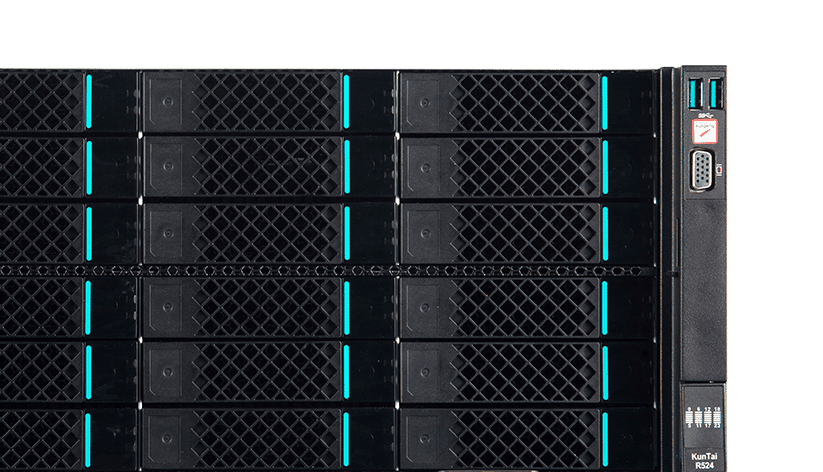 KunTai R524 存储型服务器是PA旗舰厅数码基于鲲鹏处理器推出的新一代 ARM数据中心服务器。。。。主要面向存储业务,,,,具有海量存储、、、高性能、、、低功耗以及易扩展的特点,,,,适合为大数据分析、、软件定义存 储等应用场景的工作负载进行髙效加速。。。